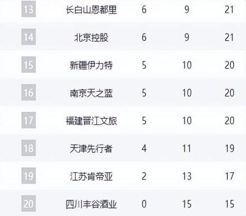 积分榜后半段,福建队、天津队、江苏队分列第17至第19名,四川队则遭遇15连败,全联盟垫底。本轮比赛展现了CBA联赛的激烈竞争和不确定性,各队为季后赛席位展开激烈角逐,排名格局随时可能发生变化。